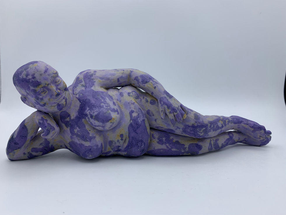Made with stoneware clay and mottled purple glazes in the Fall of 2022.